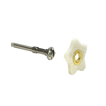 Disposable felt polishers that offer a desired intermittent touch with rounded points. Allows the user to not only polish facially, but interproximally and occlusally. Variable thickness depending on the force and speed applied, due to the rounded angles. Ideal thickness allows the practioner to access even hard-to-reach areas. Mandrels are autoclavable and reusable.