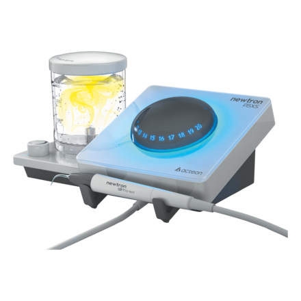 Compact and stylish ultrasonic generator combining 4 treatment modes for efficient clinics and innovations. Sleek, ergonomic design with removable control dial and handpiece holder for greater aseptic control. Equipped with B.LED technology for the detection and treatment of dental plaque. Reveals plaque using fluorescence from the blue light of the NEWTRON° SLIM B.LED handpiece. Secure and stable cylindrical tank with new lid is easy to fill, even during treatment. Liquids or F.L.A.G. for B.LED can be mixed directly into the tank. Kit: Newtron P5XS B.LED, Newtron Slim B.LED Handpiece, Blue Ring, White Ring, Tip No 1, Tip No 10x, Tip No 10z, Autoclavable Wrench and Dental Plaque Disclosing Liquid F.L.A.G. 100ml.