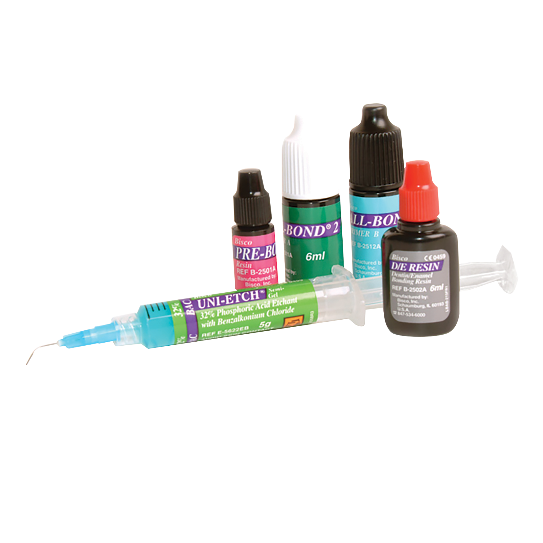 Etch kit with the ability to bond to dentin, enamel, new or old composite, precious, semi-precious and non-precious casting alloys, silane-treated porcelain, and new or old amalgam. Features hydrophilic properties of its primers which are extremely effective to wetting agents and co-polymerising monomers. Wetting of the dentine, dentine tubules and interaction with the dentine substrate readily occurs when the smear layer is removed, creating a sealed dentine surface ready to adhere to restorative materials.