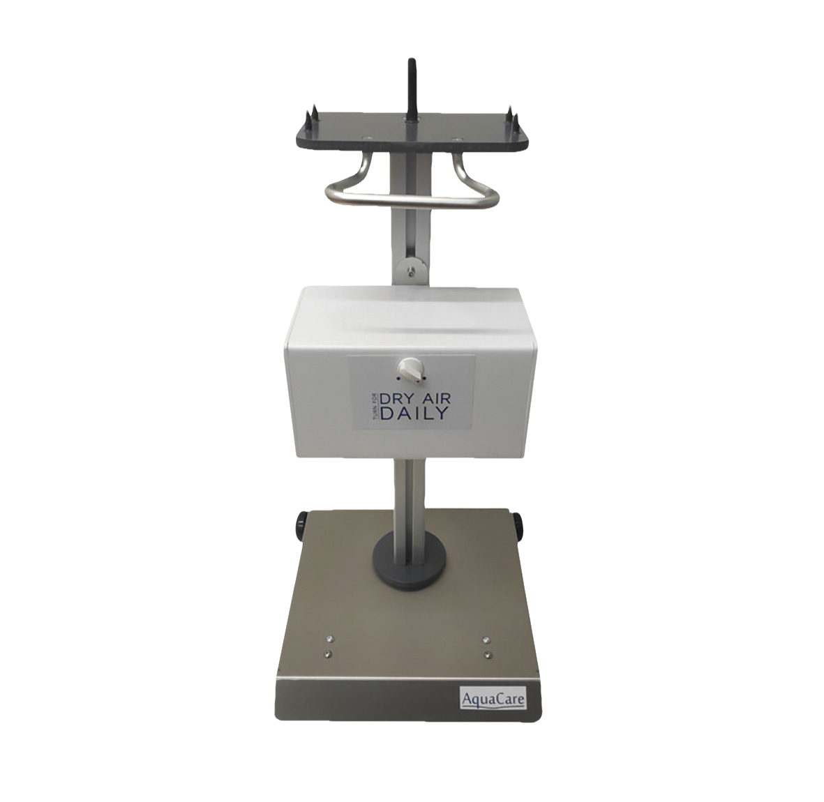 Stand designed to conveniently hold both the single or the twin AquaCare units. Compact and mobile it can be conveniently stored under counter and drawn out for use.