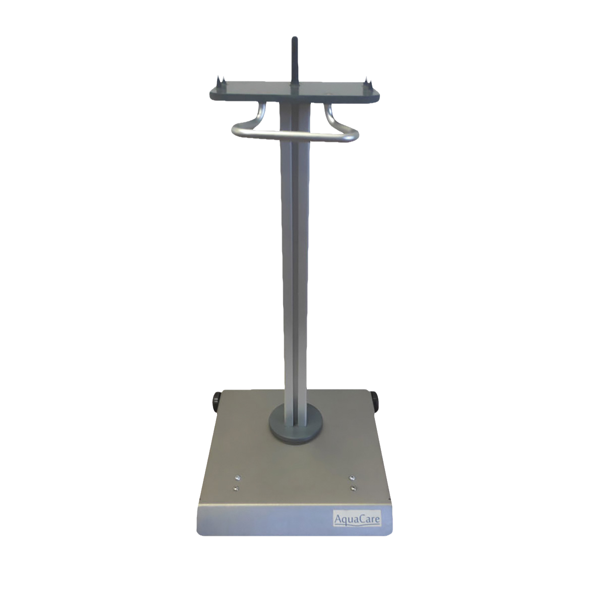 Stand designed to conveniently hold both the single or the twin AquaCare units. Compact and mobile it can be conveniently stored under counter and drawn out for use.