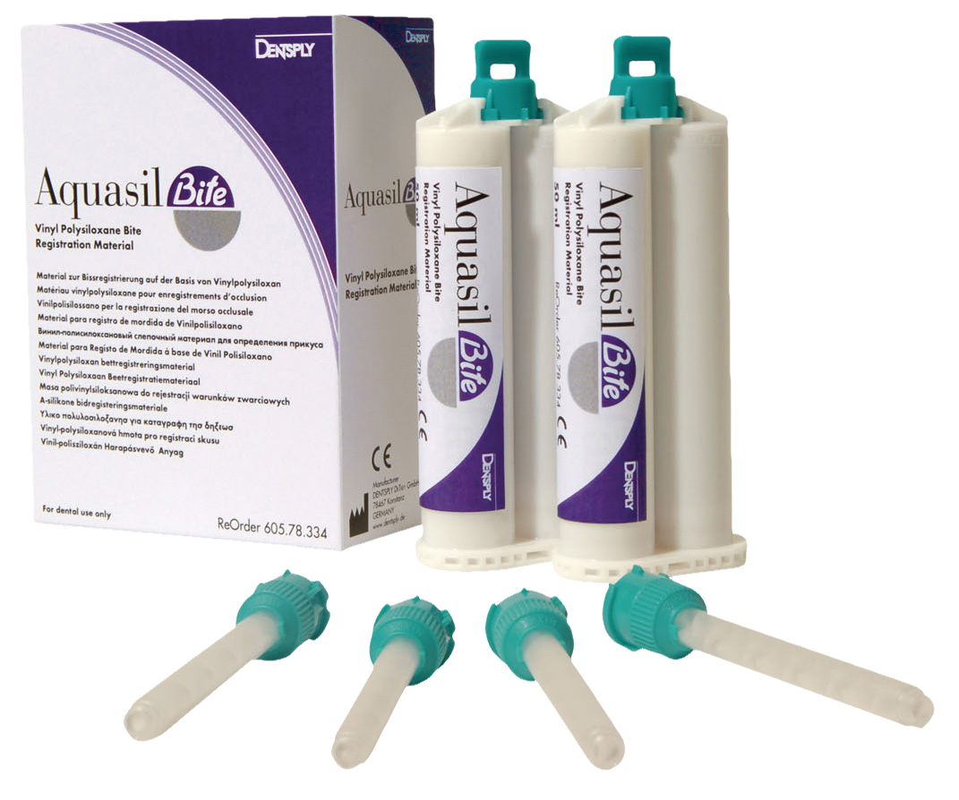 A-Silicone bite registration material providing final hardness combined with high resistance to breaking and ease of trimming. Designed for accurate interocclusal and jaw relation records. Minimal resistance to closure during the 30 second working time. Excellent detail reproduction.