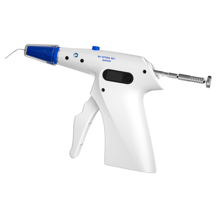 Obturation gun which provides quick heating within 15 seconds to reduce waiting time and increase work efficiency. 360 degree rotable injection needle rotates freely to facilitate multiangle filling. Injection needle (0.5mm) enables easy access to the apical 3mm of canal and brings better filling. Innovative dual screen display design enables convenient operations in different angles and tooth positions.