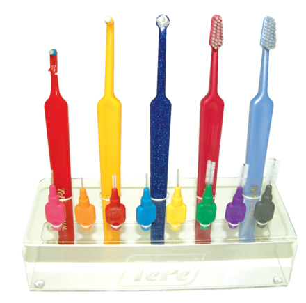 Stylish acrylic stand allows the TePe range of interdental and other brushes to be stored and displayed but still be easily accessible within the surgery. Brushes not included.