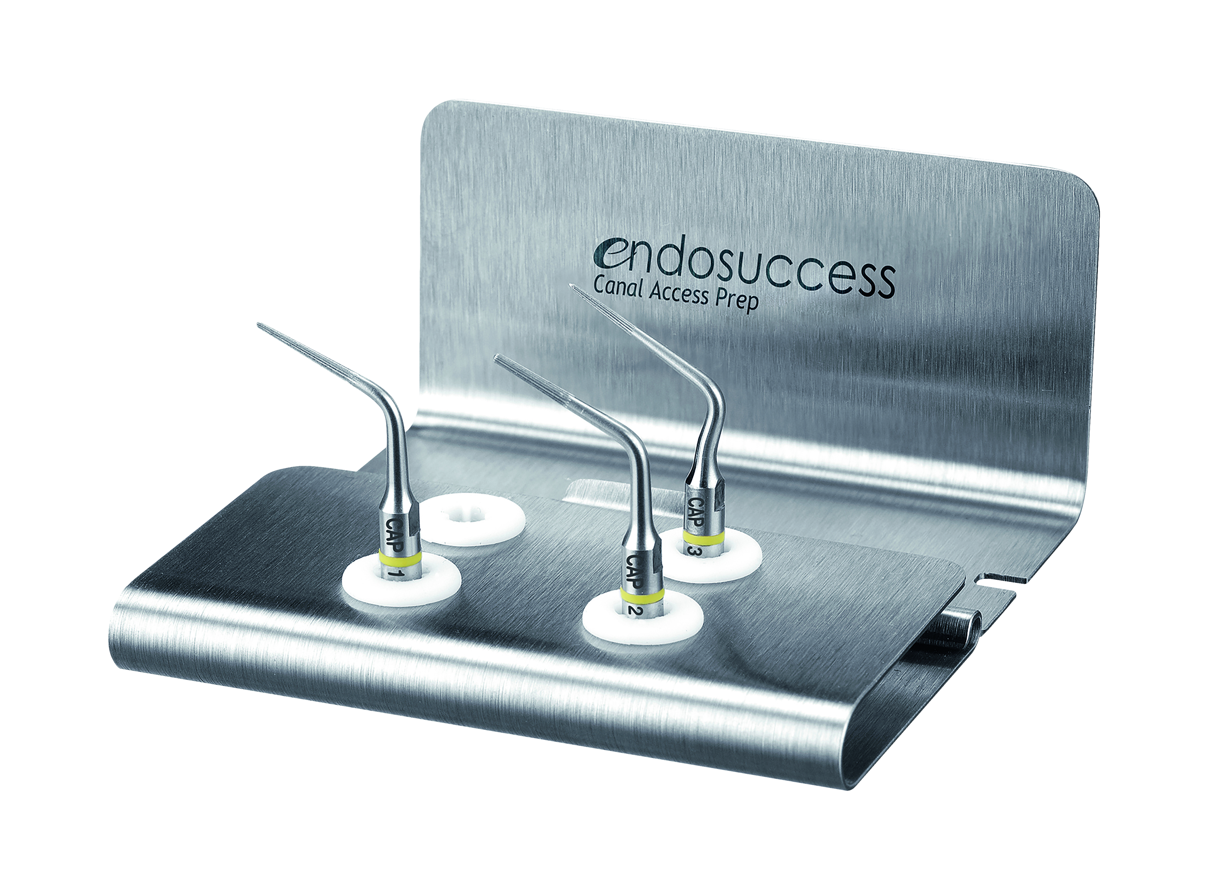 Ultrasonic tips that provide the ideal solution for locating and opening hidden or calcified canals, and shaping and finishing the access cavity. Includes Tips x 3 (CAP1, CAP2, CAP3), Metal Holder and Autoclavable Universal Wrench.