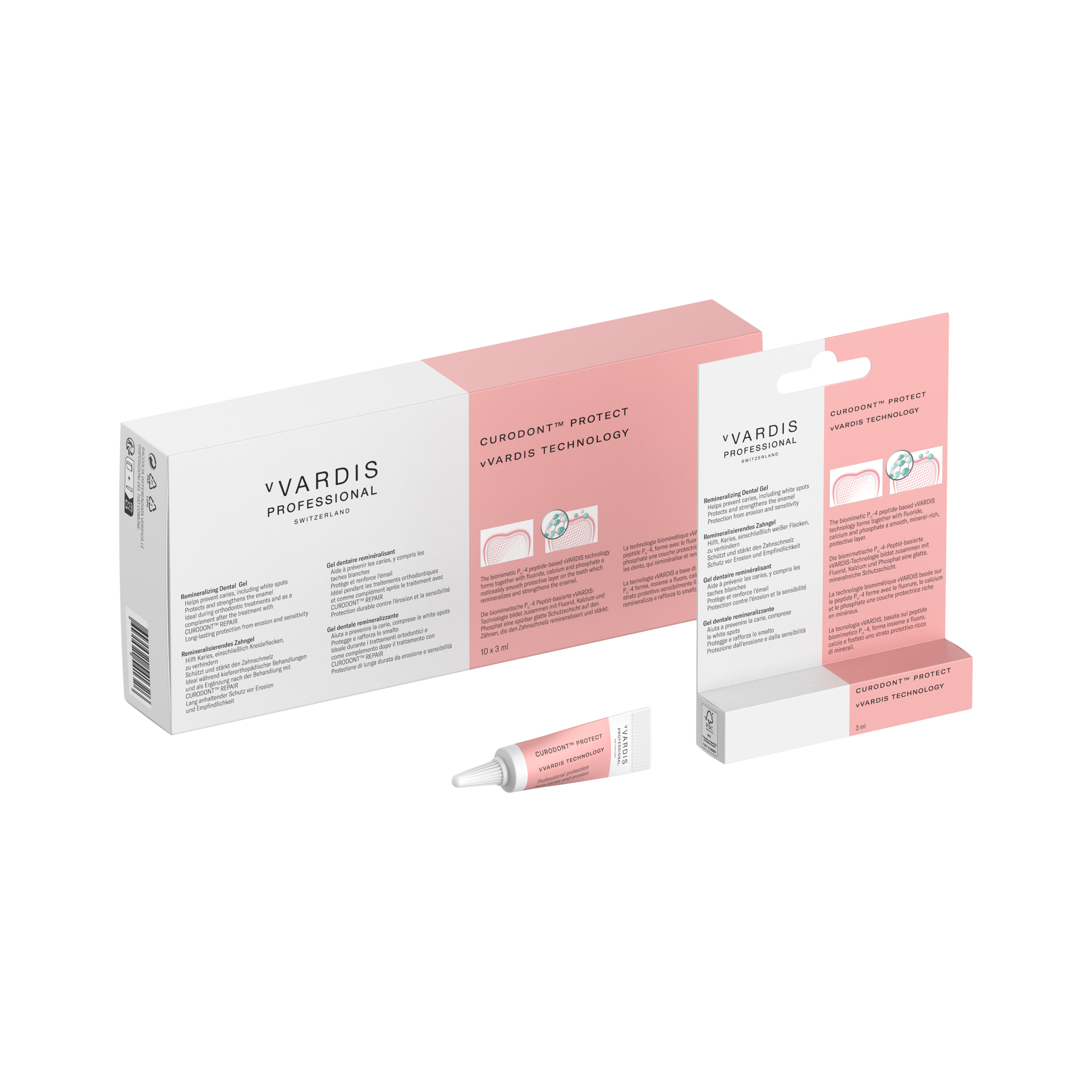Easy-to-use regenerative gel for use in-office and at home. The patented biomimetic Oligo-Peptide 103 technology forms a protective layer that shields enamel and dentine against bacterial and food acids, effectively protecting the tooth from caries and erosion. It also gives an excellent smooth teeth sensation. Especially suited for patients at a high risk of caries, including those undergoing fixed orthodontic treatment/aligner therapy, for patients with high acidic exposure, and as a finish for professional dental cleaning or bleaching appointments. Suitable for ages 6 and up.