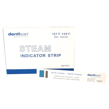 Indicator strips used to ensure that the correct sterilisation conditions have reached packaged instruments. Monitors one or more sterilisation processes for the purpose of detecting sterilisation failures in packaging, loading or steriliser function. Steam, rather than heat alone, is required to initiate colour change. Provides permanent record of compliance. Indicator turns from blue to black when exposed to sterilisation. 3.5 minutes at 134°C, 1.5 minutes at 121°C.