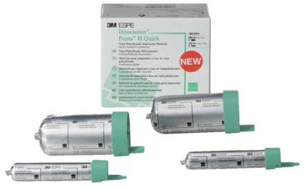 Impression material for crown and bridge impressions and inlay and onlay impressions. Accurate impression results. Void-free mix through the Pentamix Automatic Mixing Unit. Good detail reproduction. Hydrophilic properties. Pack includes Base Paste 300ml x 2 and Catalyst 60ml x 2.