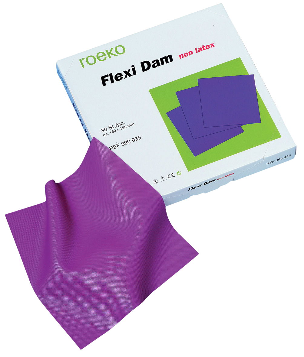 Powder free and latex free rubber dam. More tear resistant than latex. Highly elastic for effective isolation. No unpleasant odour. Violet colour helps distinguish from latex dams.