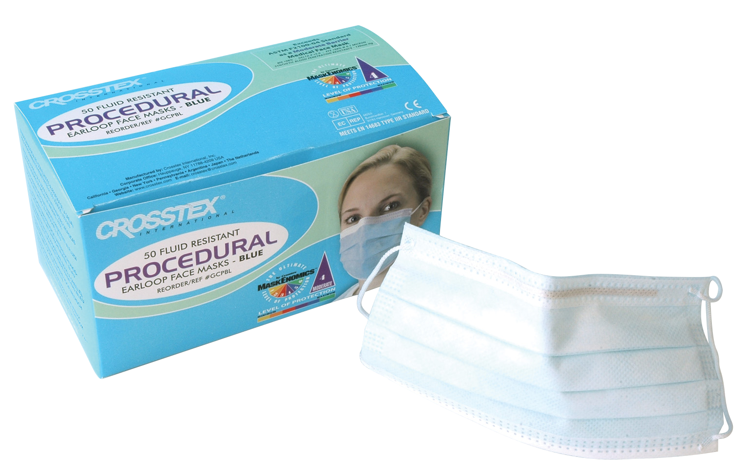 Crosstex Face Mask Procedural Loop Type IIR Blue 50pk