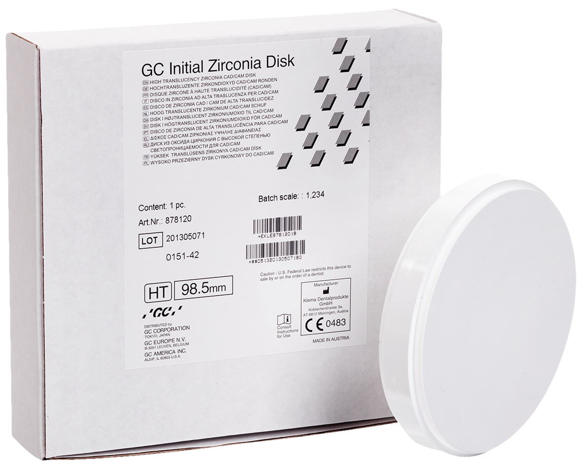 High quality zirconium disk which is easy to clean and ideal for veneering and full contour monolithic restorations. The Zirconium Disks are Cold Isostatic Pressed (CIP) for optimised physical properties. Standard Translucency (ST) is ideal for veneering. High Translucency (HT) is ideal for full contour, monolithic restorations. Easy to mill and easy on milling burs. Less dust.