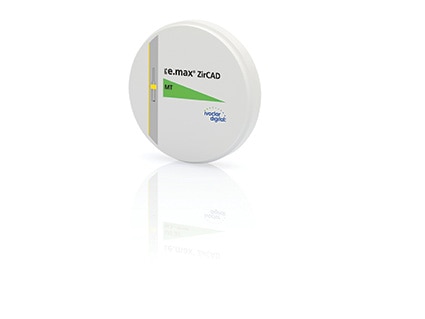 Zirconium oxide multi discs designed for the anterior and posterior region, including monolithic crowns, monolithic 3-unit bridges and implant-supported superstructures. An optimised raw material mixture provides the material with enhanced mechanical properties (850MPa). The progression of shade and translucency maximises the appearance of monolithic crowns and bridges without necessitating the application of characterisations, and optimises the efficiency in the lab.