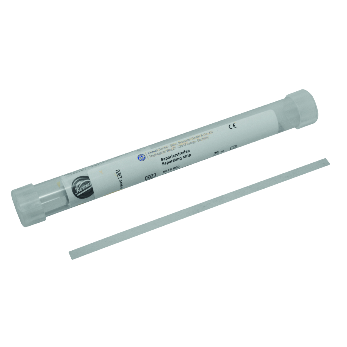 Serrated separating strips for interdental use. Stainless steel. Serrated on one edge, and highly flexible for interproximal separation. Autoclavable and reusable. Can be cut to desired length with scissors.