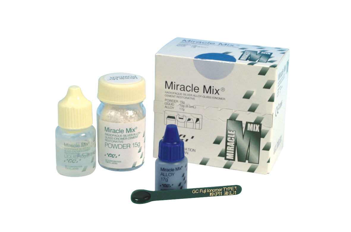 Silver alloy glass ionomer cement for core build-up. Intro Kit: Powder 15g, Liquid 8ml plus Silver Alloy 17g.