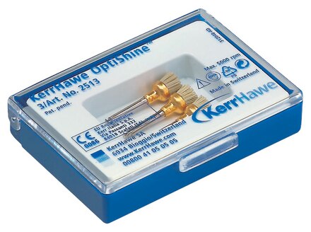 The first concave-shaped polishing brush allowing simpler and quicker production of smooth surfaces. The concave shape of the brush is efficient on all tooth surfaces, including less accessible surfaces such as interproximal spaces and occlusal fissures. The bristles are embedded with polishing particles (silicon carbide) that polish the surface to an extremely high lustre, therefore a proprietary paste is not necessary. Efficient gloss polish for restorations made of composite compomer, resin modified glass ionomer or ceramics as well as for prophylactic treatment.