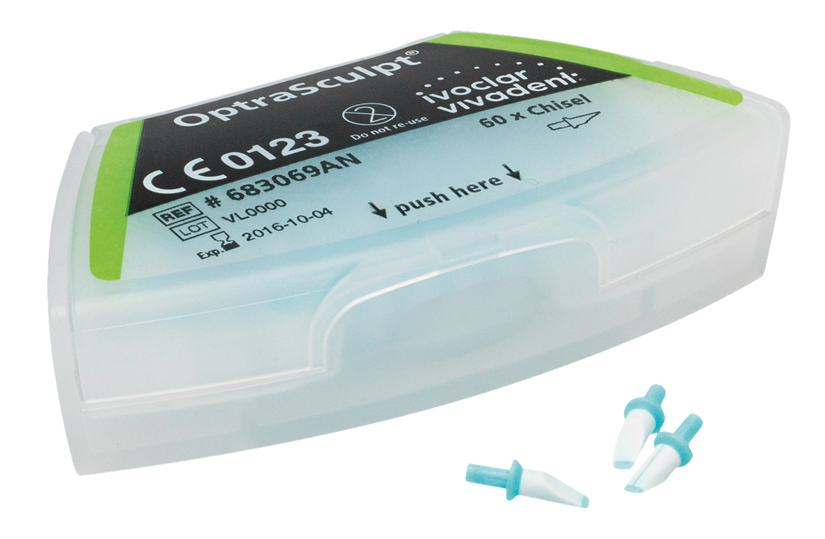 Contouring instrument for the efficient contouring of composite restorations in the posterior region. 3 attachment shapes for the professional creation of sophisticated anatomical tooth structures. Ball for the adaptation of composites, Pointed Tip for professional contouring of fissures, and Chisel for the creation of proximal marginal ridges. Optimum working angle for the posterior region. Hygienic dispenser box for easy access to attachments.
