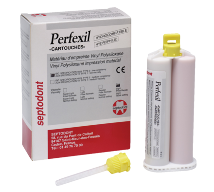 Vinyl polysiloxane silicone with an addition-type polymerisation reaction. For highly stable and accurate impressions of dental and oral structures for prosthodontics. Hydrophilic - reduced risk of bubble and voids formation. Optimum flow into subgingival area due to the thixotropy of the material. Odourless, tasteless and user friendly. Pacl includes Cartridge 50ml x 2 and Mixing Tips x 12.