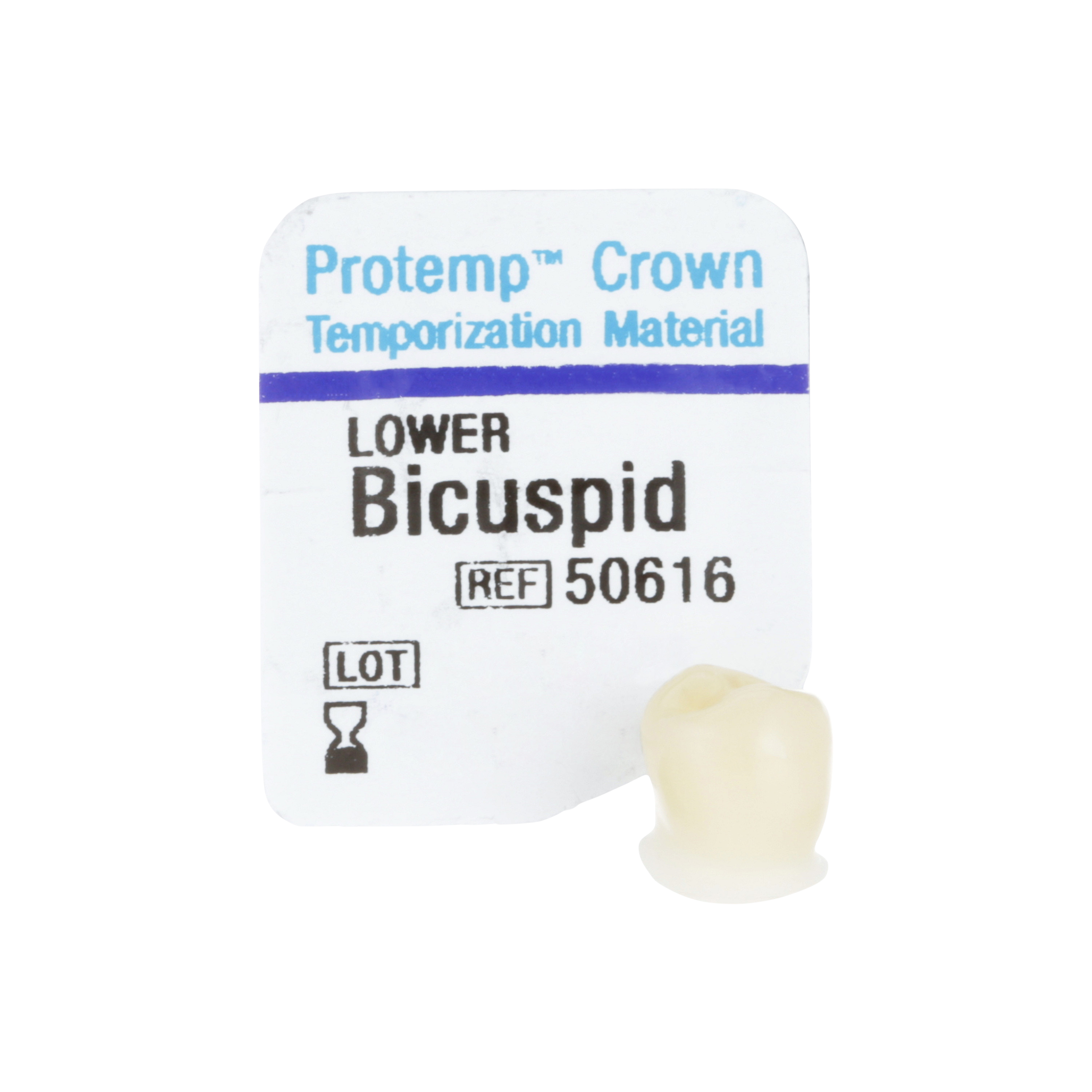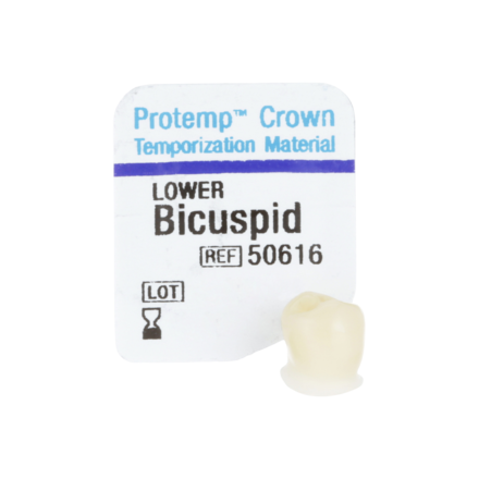 Single unit, self-supporting, malleable and light-curable composite crown. With its preformed anatomy, precision fit and excellent strength, this material is a innovative temporisation solution for single posterior units and ideal in situations where fabricating a matrix is not possible. Suggested applications include Single unit posterior temporisation, long-term temporisation, implant temporisation and digital impression-taking. Refill Kit includes Biscuspid (Premolar) Lower Temporary Crowns x 5, Instructions and Crown Size Tool.