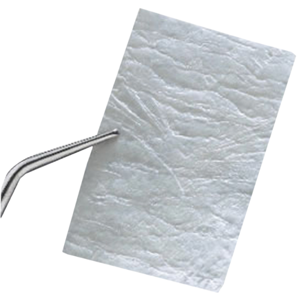 Resorbable collagen membrane intended for use in oral surgical procedures. For placement to aid in wound healing in the areas of dental implants, bone defects, periodontal defects and ridge augmentation. Guides healing of bone and surrounding tissue. Longer resorption time, 26-38 weeks, for sustained function in bone repair. May be placed either side against the tissue or bone.