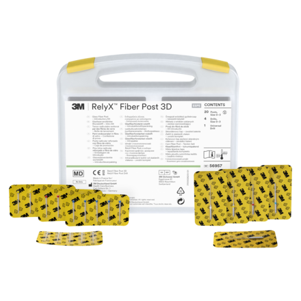 Glass fibre posts with coronal 3D macro retention, offering higher mechanical retention to the core build-up material. Microporous surface provides a strong bond in the root canal without a silanating step. Post position control is greatly improved as a result of its enhanced radiopacity. Low risk of root fracture due to dentine-like elasticity. Provides a more aesthetic option than a metal post. Intro Kit includes Posts x 20 (Size 0, Size 1, Size 2, Size 3) and Drills x 5 (Size 0, Size 1, Size 2, Size 3, Universal).