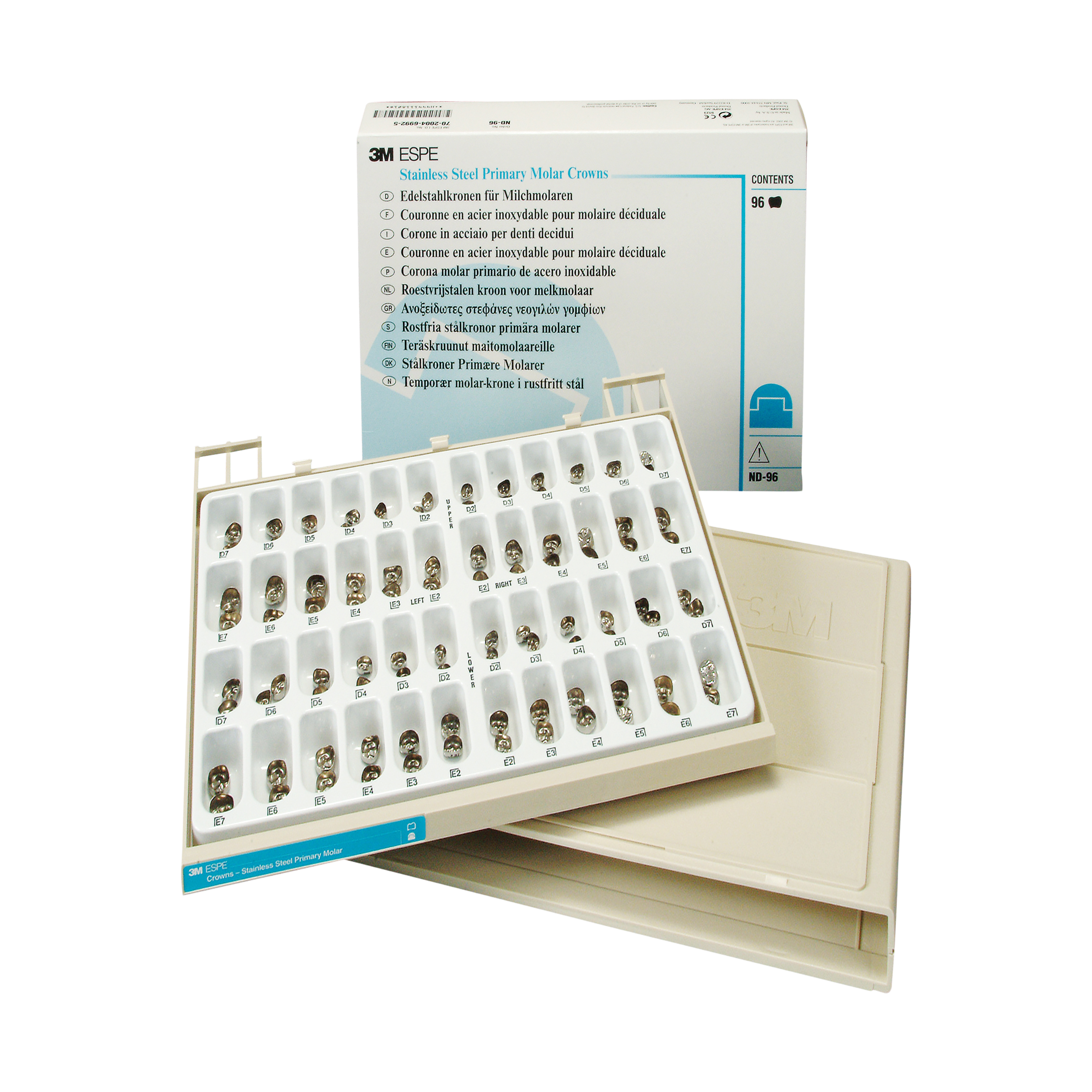 Crowns that are pretrimmed, prebelled and precrimped for fast and easy placement. Work-hardened and with a decreasing cervical wall thickness for better marginal adaptation. Accurately duplicates anatomy for better fit and performance. Superior longevity compared to multisurface amalgam fillings. Permanent molar selection can be used for long-term cases with economic considerations. High-quality stainless steel with lifelike height, contour and occlusal surface.
