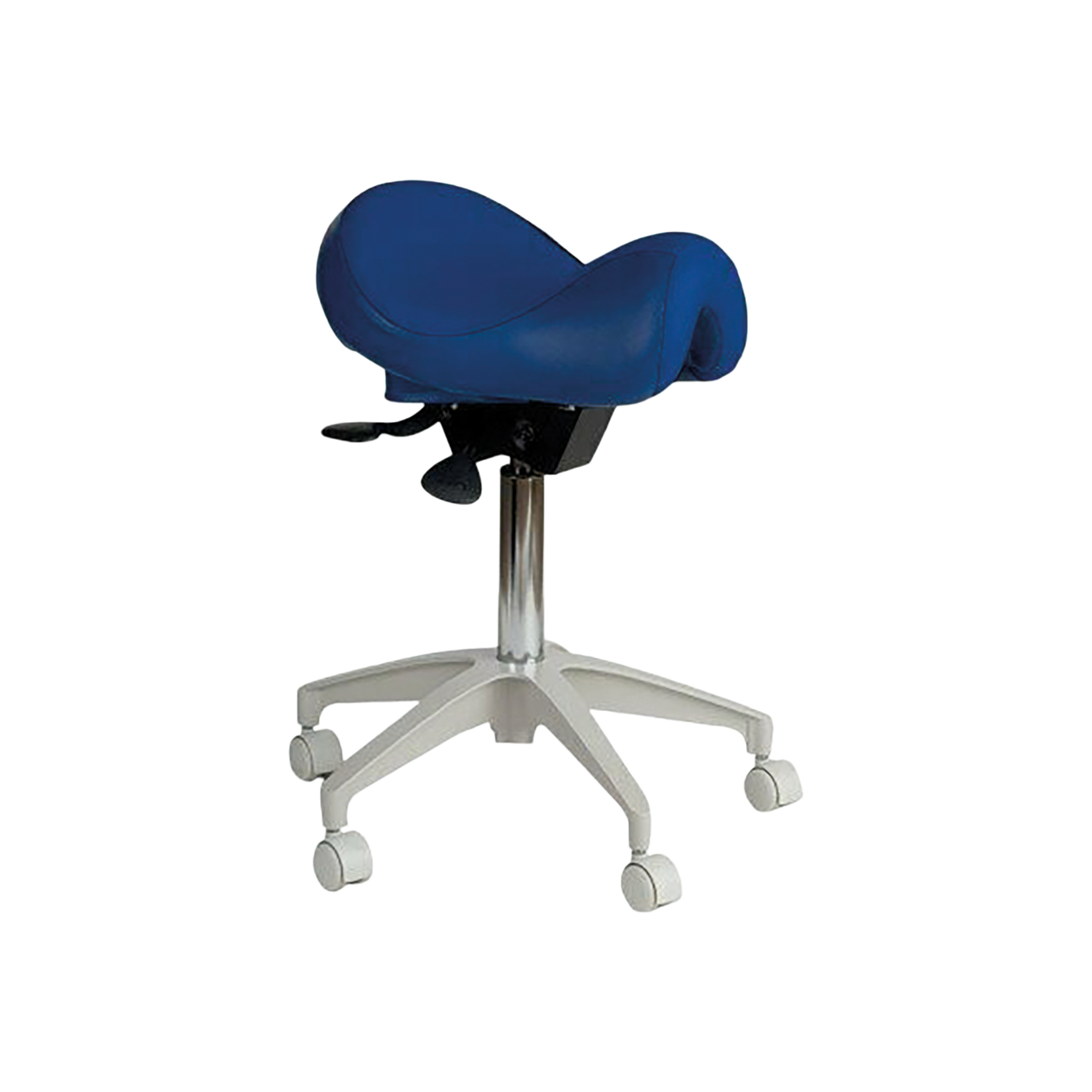 Saddle seat without backrest. Wipe-clean, and contains antibacterial and antifungal agents. Reduces back and shoulder pain. Large range of upholstery colours available. Includes upholstery and remote delivery.