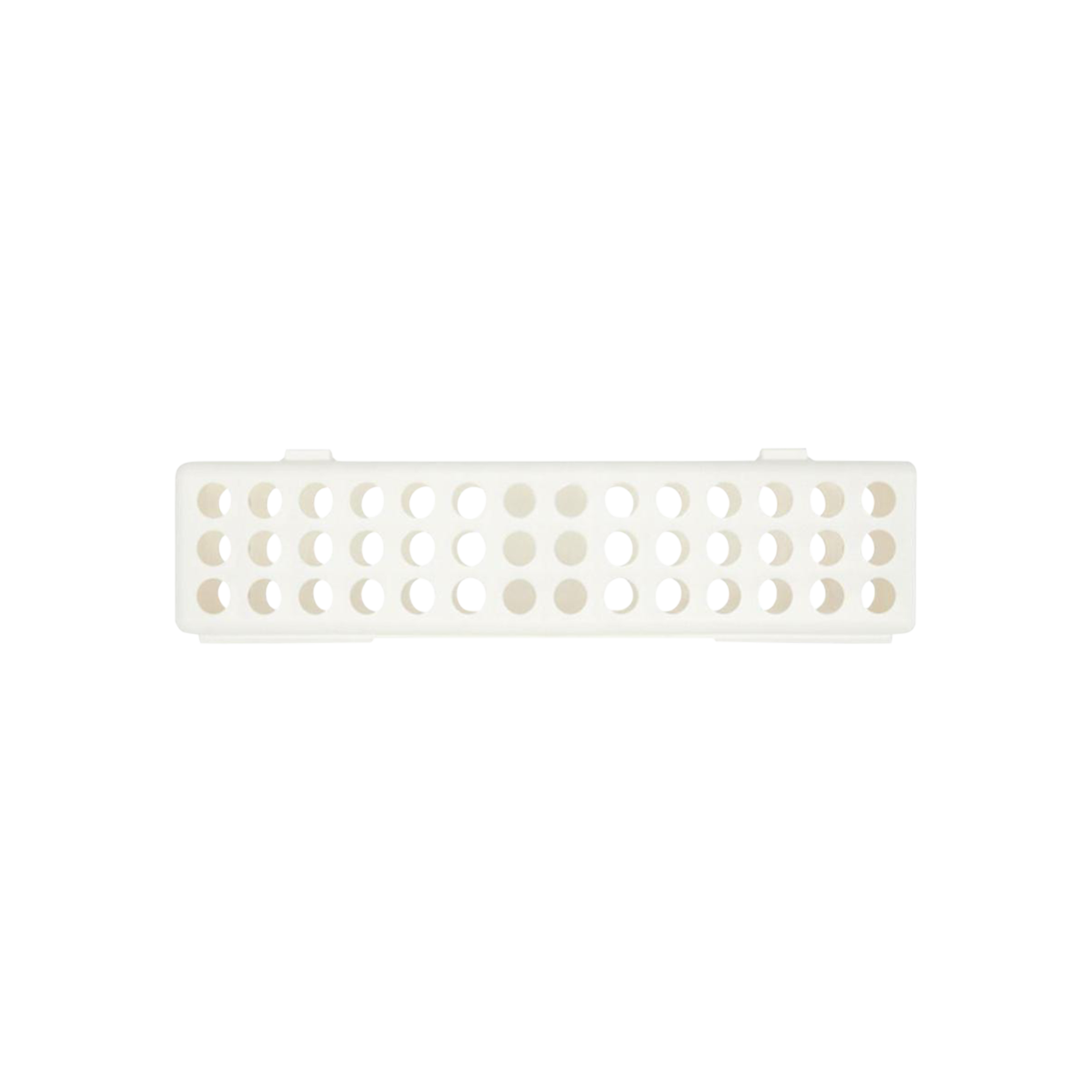 Steri container to keep instruments setups together through sterilisation processes. Holds 10-14 instruments. Dimensions: 20.63 x 4.76 x 4.76cm.