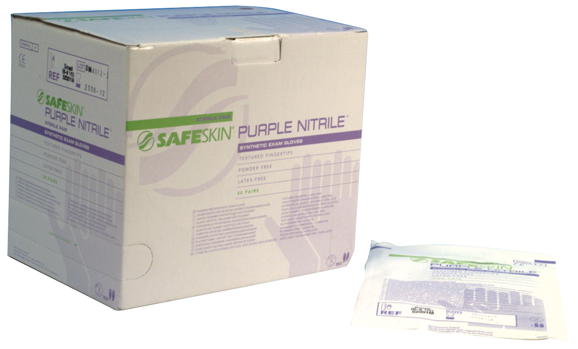 Powder-free purple nitrile gloves. Latex-free and sterile.