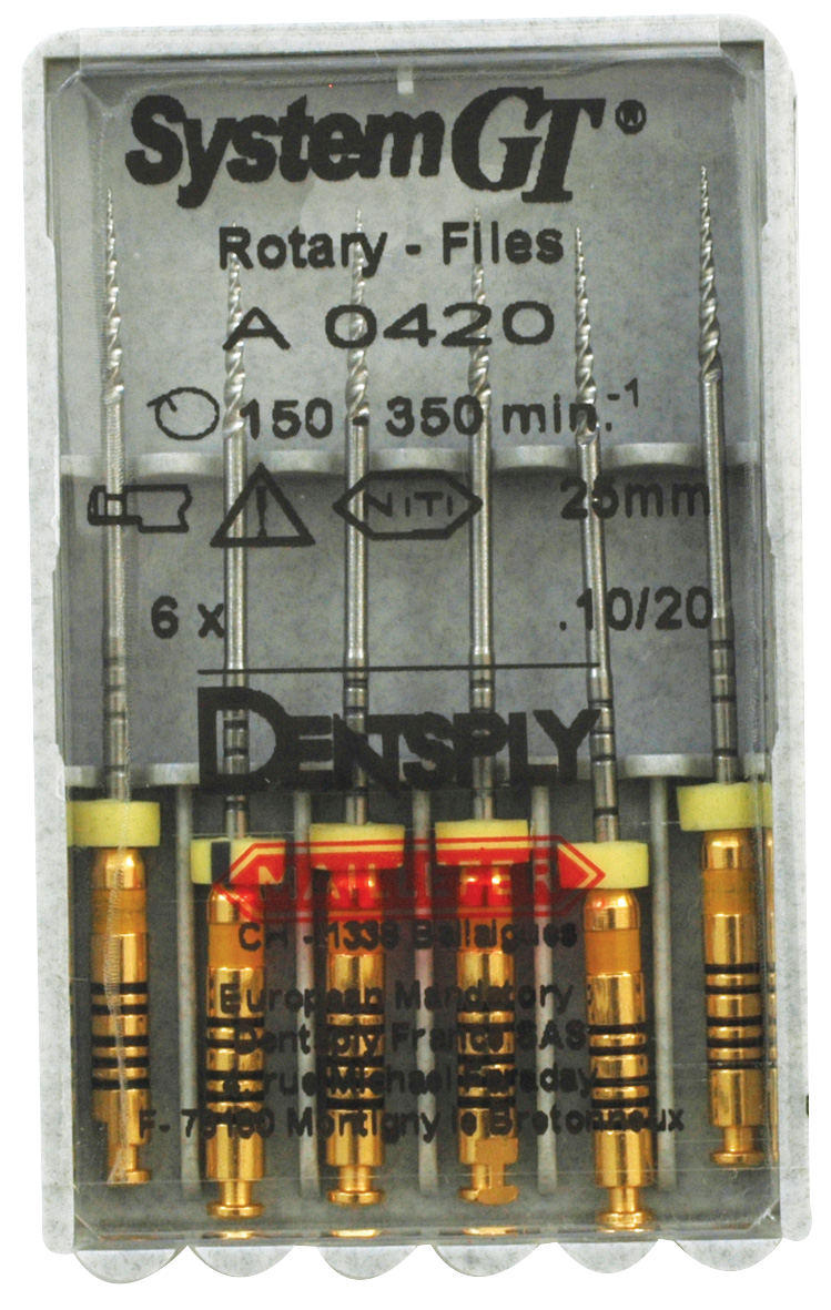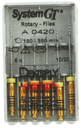 Rotary files featuring the unparalleled flexibility and strength of nickel-titanium. Shorter handles for easier access to posterior teeth. Radially landed flutes to help keep the file centered in the canal. Non-cutting tips to help avoid perforations and ledging. Varied pitch and sharpness along flutes to reduce the potential for threading. Groupings of common tip sizes and maximum cutting diameters allow continuity in apical preparation and resistance form.