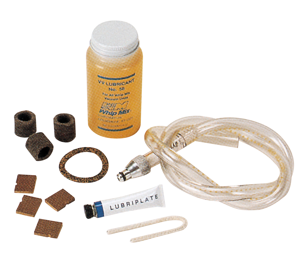 Vac-U-Care Maintenance Kit. Includes; Tubing and Connections, Vanes, O-Ring No 1 x 6, Lubriplate Tube, Felt Set for Oiler Unit, Wick, Cork Gasket, and Lubricant 4oz