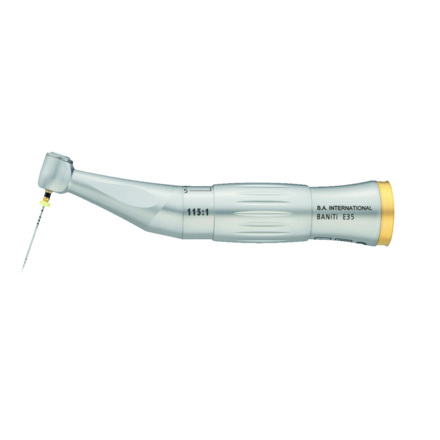 Endodontic contra-angle with torque control and direct connection to the motor. 115:1 speed reducing for micromotors. 66:1 speed reducing for air motors. Can be used with all common NiTi files in the market. Easytorque setting with the magnetic ring (5 torque levels). Retro-rotation system avoid the file to be jammed in the route and any excessive torque. Optional apex clip connection. Suitable for washer disinfectors and autoclaves. 12 month warranty.